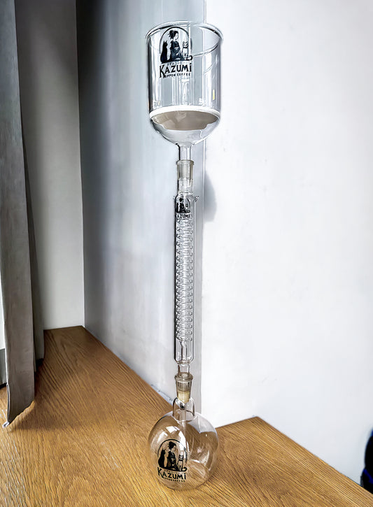 Kazumi Coffee is a unique coffee maker designed to enhance your brewing experience with an elegant setup featuring an flask, condenser, and funnel. Our system includes a ceramic filter to deliver the perfect cup every time.
